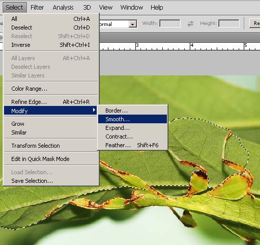 Для каждого пиксела в выделенной области программа Photoshop анализирует пикселы вокруг него, находящиеся в пределах расстояния, указанного в параметре "Радиус". Если выделено более половины окружающих пикселов, то пиксел остается в выделенной области, а невыделенные пикселы вокруг него добавляются к выделенной области. Если выбрано меньше половины окружающих пикселов, то пиксел удаляется из выделенной области. В итоге происходит удаление мозаичности и сглаживание острых углов и зубчатых линий выделения: