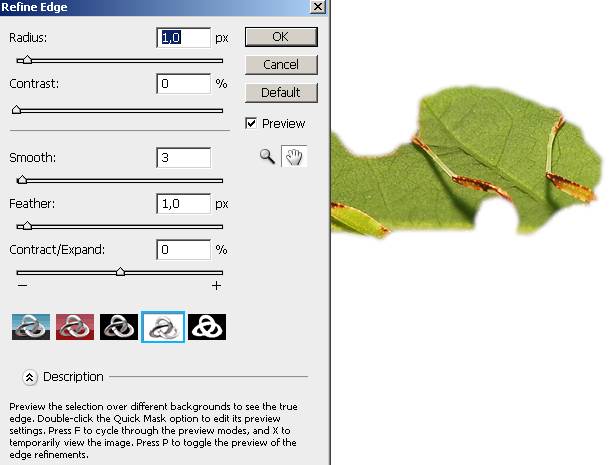 Рисунок 31. Параметр "Уточнить край" улучшает качество границ выделенной области и позволяет просмотреть выделенную область