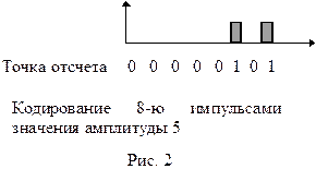 Помимо импульсных методов модуляции имеется импульсно-кодовая модуляция (ИКМ), нашедшая наиболее широкое применение в современных системах электросвязи. ИКМ основана на кодировании амплитуд импульсов, полученных с использованием АИМ (рис. 2).