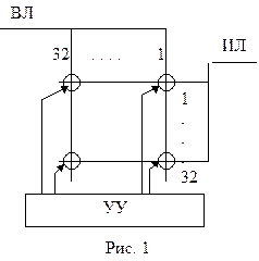 В этом случае 8-разрядная кодовая группа, характеризующая амплитуду сигнала, поступает из канала i входной линии (ВЛ) (входной магистрали, порта) в канал i заданной исходящей линии (ИЛ) (выходной магистрали порта), если она не занята. В определенные моменты времени с управляющего устройства (УУ) необходимо подавать сигналы для замыкания соответствующих точек коммутации.