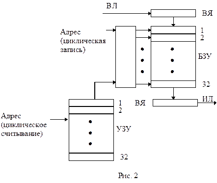 В этом случае в так называемое буферное запоминающее устройство (БЗУ) последовательно в соответствии с временными позициями записываются поступающие импульсы. Перед БЗУ имеется вспомогательная ячейка памяти (ВЯ). Она служит для накопления последовательно передаваемых восьми разрядов информации об амплитуде сигнала. Затем эта информация записывается в соответствующую ячейку БЗУ (по номеру канала ВЛ), что обеспечивается с помощью сигнала «Адрес» (циклическая запись).
