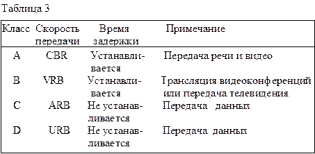 АТМ предоставляет 4 класса обслуживания. (таблица 3).