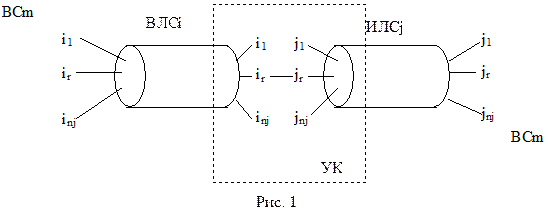 Например (рис. 1), в i-й входящей в УК линии связи (ВЛСi) m-е виртуальное соединение (ВСm) проходит по ir-му виртуальному каналу (ВКir) в ВЛСi, а в j-й исходящей линии связи (ИЛСj) данное ВСm, проходит по ВКjl.