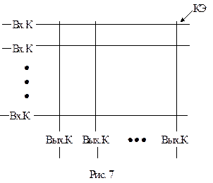 КС матричного типа (рис. 7). В общем случае БЗУ КС могут располагаться в выходных контроллерах, во входных контроллерах и в каждом узле матрицы — коммутационном элементе (КЭ). В ряде работ показано, что наиболее эффективным является размещение БЗУ в выходных контроллерах матричных КС.