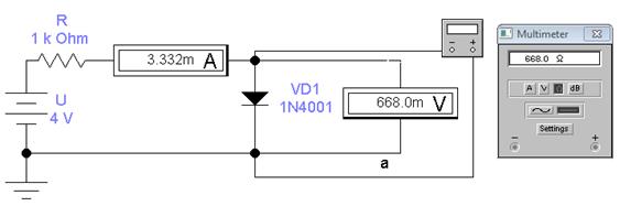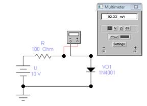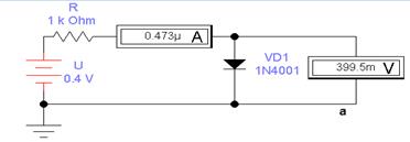 Задание 1.Измерить значения UПР и IПР диода, таблица 1 (L5_d_01.ewb, L5_d_02.ewb).
