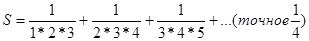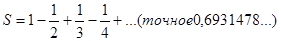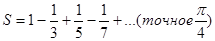 Вычислить приближенное значение бесконечной суммы. Нужное приближение считается полученным, если вычислена сумма нескольких первых слагаемых, и очередное слагаемое оказалось по модулю меньше e(0<e< 0.1) Сравнить результат с точным значением.