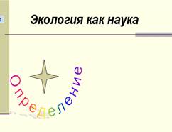 Вставить заголовок: Экология как наука .(Вставка – Надпись –в появившемся окне набрать Экология как наука.)