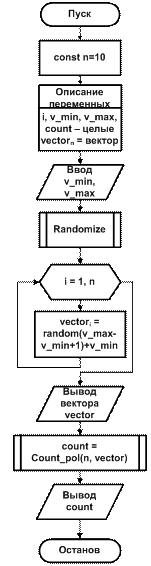 1. Представим решение этой сложной задачи через решение более простой задачи посредством рекурсивного обращения. Чтобы подсчитать количество нужных нам элементов во всем векторе, содержащем n элементов, необходимо сначала сделать это для вектора, содержащего n–1 элемент, n-2 элемента, и так далее. Затем остается выполнить проверку последнего элемента, и добавить к результату единицу в том случае, если он окажется положительным.
