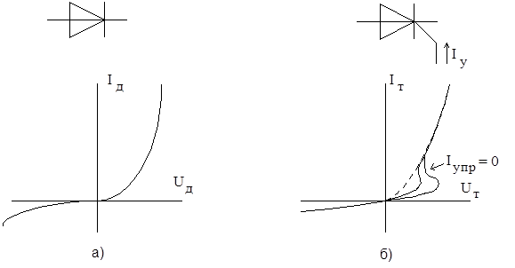 Рис.1. Вольт-амперные характеристики: а) диодов и б) тиристоров.