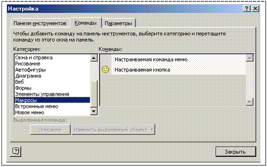 2. Выбрать в меню Сервис команду Настройка, откроется ДО НАСТРОЙКА навкладке КОМАНДЫвыделяется категория макросы (Рис.)