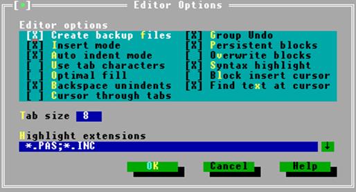 ENVIRONMENT/Editor. Диалоговое окно этой опции показано на рис. 2.10.
