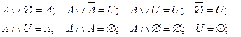 Основні тотожності алгебри множин: