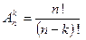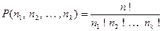 Кількість n-перестановок з повтореннями, які містять n1 елементів першого типу, n2 елементів другого типу, ... , nk елементів k-го типу (n1+n2+... +nk =n): .