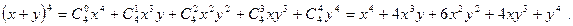 4. Знаходжу розклад виразу (х + у)k для k = 4 (за допомогою біноміальної формули). Скориставшись біноміальною формулою можна записати:
