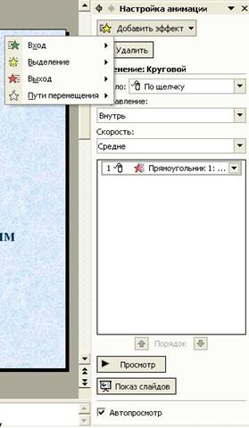 o щоб настроїти показ відео кліпу, виділіть об’єкт відео на слайді, виберіть Показ слайдов/ Настройка анимации/ Добавить эффект для зміни способу відтворення
