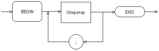 Любая группа операторов, размещенных между словами BEGIN и END (иначе, операторные скобки), рассматривается как один – составной оператор. При выполнении составного оператора все его компоненты (операторы) выполняются в порядке их написания (линейно) (см. рис. 17).