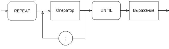 Из синтаксической диаграммы видно, что в этом операторе не обязательно использовать для тела цикла операторные скобки. Здесь ключевые слова REPEAT и UNTIL сами играют роль этих скобок.