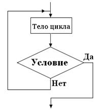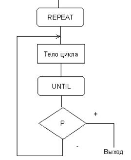 В этом операторе тело цикла выполняется до тех пор, пока ложно условие, стоящее после UNTIL. Условием выхода из цикла является истинность выражения. Мы видим, что это есть форма «цикла-до». Данный оператор представлен на рис. 26.