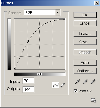 Вы видите, что Input (Вход) < Output (Выход). Это означает, что в результирующем изображении яркость пикселей больше по сравнению с исходным. Таким образом, для усиления яркости тёмного изображения кривая должна принять выпуклую форму.