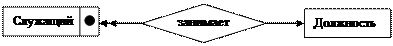 2. Связь между классами Служащий и Должность. Каждый сотрудник в организации должен иметь какую-либо должность, т. е. нет сотрудника без должности. Это означает, что не существует объекта класса Служащий, не связанного с каким-либо объектом класса Должность. Но должность может быть и вакантной, т. е. быть не связанной ни с одним объектом класса Служащий. Такая связь является обязательной по отношению к классу Служащий и необязательной по отношению к классу Должность.
