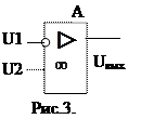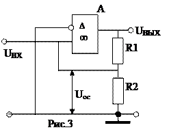 На рис.3 представлена схема неинвертирующего компаратора. Для того, чтобы перевести состояние компаратора в противоположное, необходимо изменить входное напряжение до величины напряжения обратной связи противоположной полярности.. При Uвх=–Uос происходит срабатывание компаратора.
