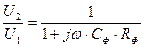 Элементы RФ и СФ образуют делитель напряжения, коэффициент передачи напряжения через который равен: