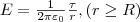 Если r<R, то замкнутая поверхность внутри зарядов не содержит, поэтому в этой области E=0. Значит, напряженность поля вне равномерно заряженного бесконечного цилиндра задается выражением (5), внутри же его поле равно нулю.