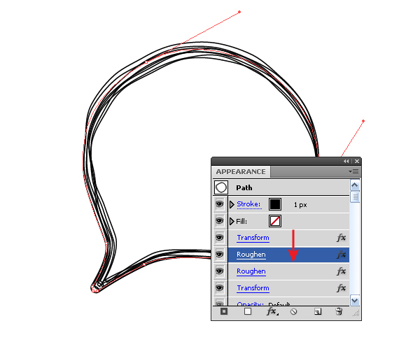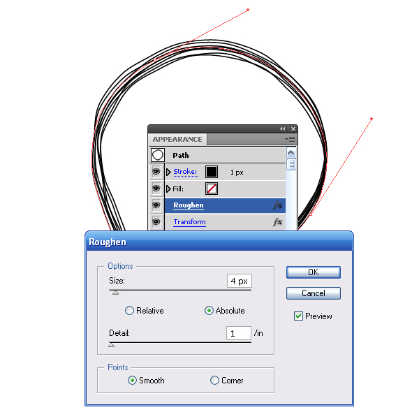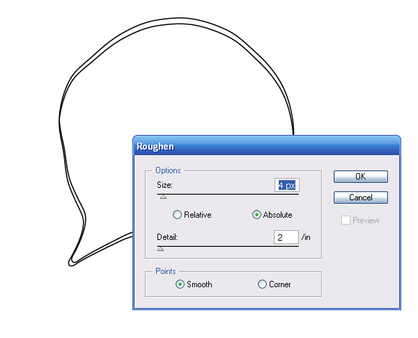 Так как наш стиль имитирует рисование от руки, придадим линиям некоторую неровность. Не снимая выделения с объекта, переходим Effect> Transform & Distort> Roughen, и, наблюдая за изменениями графики, устанавливаем параметры эффекта в его диалоговом окне.
