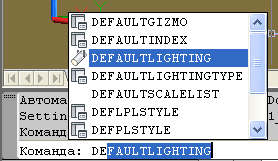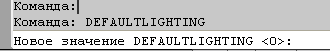Чтобы увидеть текущее значение переменной DEFAULTLIGHTING или изменить её значение, необходимо в командной строке ввести имя этой переменной -«DEFAULTLIGHTING».