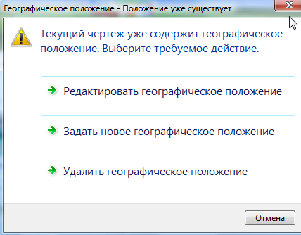 · На запросвокне: «Географическое положение - Положение уже существует»