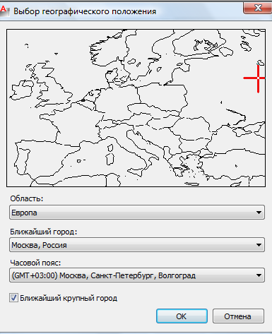 · В окне «Выбор географического положения»