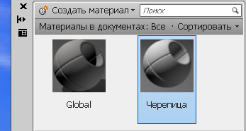 После загрузки материалов в чертёж они становятся доступными для использования в объектах. Пиктограммы загруженных материалов отображаются в верхней части на внутренней панели «Материалы в документах» окна «Обозреватель материалов»,