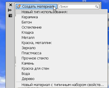 2.Правее от меню «Создать материал» находится поле «Поиск», в котором следует вводить имя материала, которое присутствует в документе.