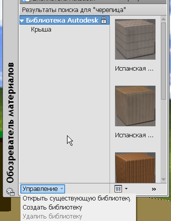 8.С помощью меню «Управление» в нижней части окна обозревателя материалов