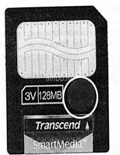 Рис. 17. Карта памяти SmartMedia Transcend, 128 Мбайт, 3 В. Обозначен элемент физической защиты от записи