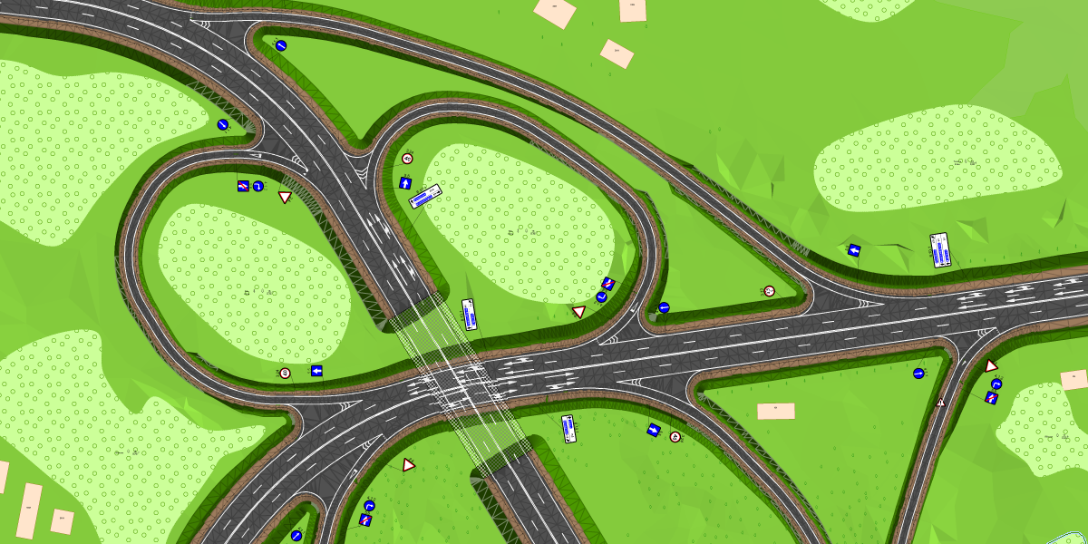 Чтобы запроектировать многоуровневую развязку в системе IndorCAD/Road, достаточно освоить базовый набор инструментов для работы с трассами, включающий инструменты для плановой и вертикальной увязки трасс. Наглядность и «прозрачность» процесса увязки нескольких трасс позволяет быстро и качественно проектировать сложные транспортные узлы, а средства анализа дают возможность сразу проконтролировать полученный результат.