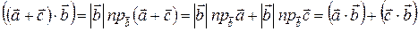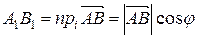 Проекцией вектора на направление , где единичный вектор, показывающий направление от к , является скалярная величина . В соответствии с рисунком , следовательно, если угол между векторами и острый, , в противном случае проекция отрицательна.