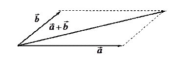 Сложение двух векторов осуществляется следующим образом. В силу того, что векторы свободны, с помощью параллельного переноса совмещаются их начальные точки, затем на этих векторах, как на сторонах, строится параллелограмм. Диагональ параллелограмма, идущая из общей начальной точки является суммарным вектором этих дух векторов.
