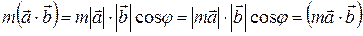 Скалярное произведение также следует из практических потребностей. В самом деле, если тело под действием силы движется в направлении , то работу совершает только проекция этой силы на направление , перпендикулярная ей проекция работы не совершает. Тогда работа, совершаемая силой на пути , вычисляется по формуле