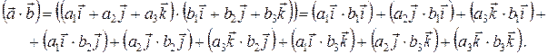 Пусть , , тогда , то есть скалярное произведение векторов в этом случае – есть сумма произведений одноименных проекций перемножаемых векторов.