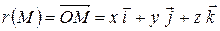Введем понятие радиуса-вектора точки – это вектор, начальной точкой которого является начало координат, конечной – точка . Если точке соответствуют координаты , нетрудно заметить, что радиус-вектор точки может быть представлен в виде .