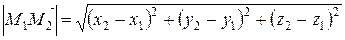 Таким образом, длина вектора , совпадающая с расстоянием между точками и , вычисляется по формуле