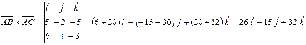 Поскольку площадь параллелограмма, построенного на векторах , равна , то есть длине векторного произведения этих векторов, площадь заданного треугольника равна половине площади параллелограмма, то .