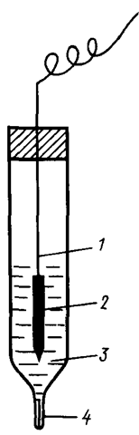 Рис. 88. Каломельный электрод: 1 – ртуть; 2 – паста из каломели; 3 – отросток для соединения каломельного электрода с другими электродами; 4 – платиновая проволока; 5 – раствор хлорида калия