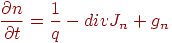 где p и n — концентрации дырок и электронов, соответственно; q — заряд электрона; gP и gn — скорости процесса генерации-рекомбинации, соответственно, дырок и электронов;