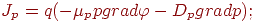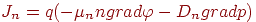 где q — плотности дырочного и электронного токов; μp, μn — подвижности; Dp, Dn — коэффициенты диффузии дырок и электронов; — электрический потенциал.