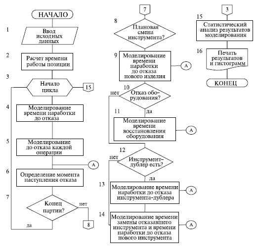 Рис. 16.1. Алгоритм имитационного моделирования процесса изготовления изделий РЭС