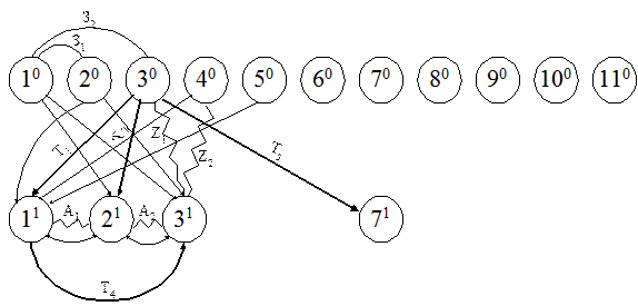 Дуга uij = (pi , pj) Î U1, pi Î P1, pj Î P11 указывает на то, что поверхность рj обрабатывается с комплекта pi; uij = (pi , pj ) Î U11, pi Î P11, pj Î P1 указывает на то, что поверхность рj входит в комплект pi.