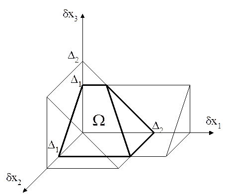 Геометрическая интерпретация допустимой области W для размерных цепей показана на рис.5.5. Ограничения на допуски dx в виде неравенств для каждой размерной цепи имеют вид: