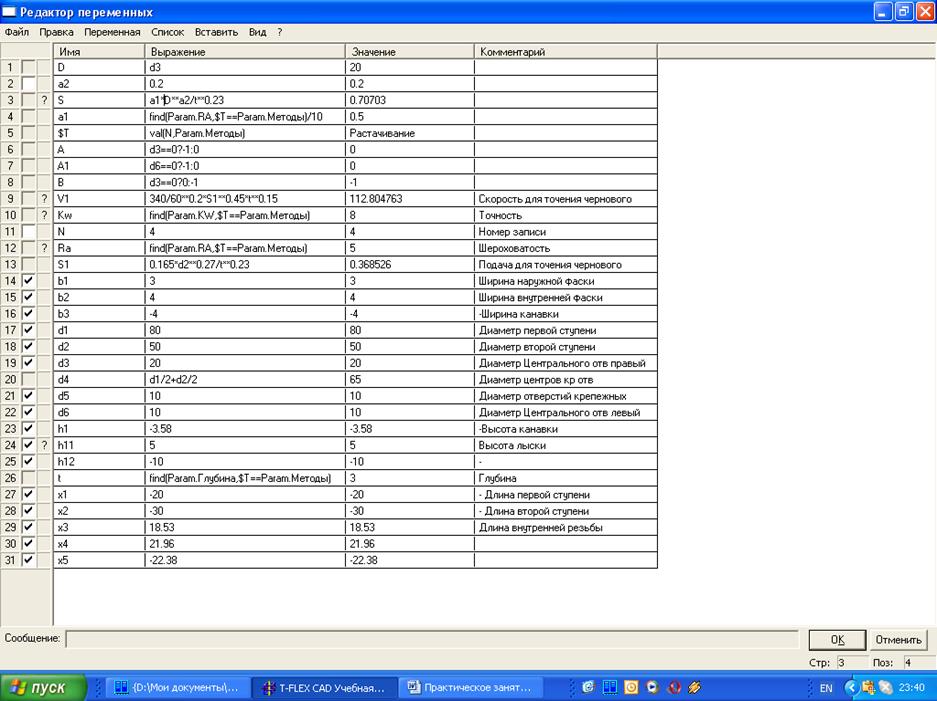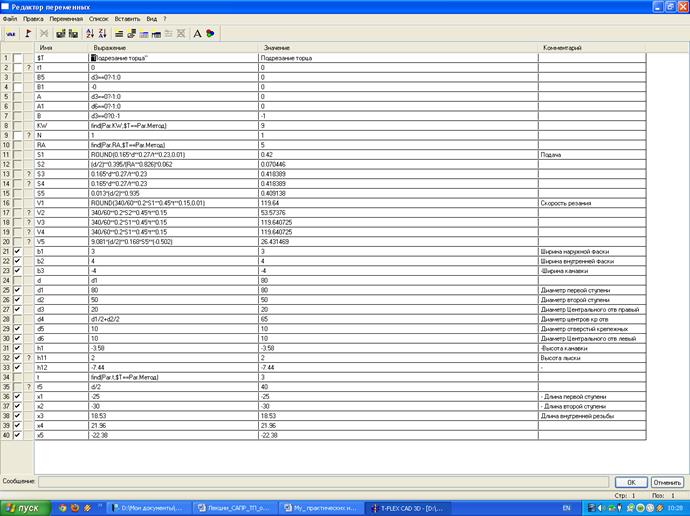 Рис.7.3. Переменные параметризованного чертежа